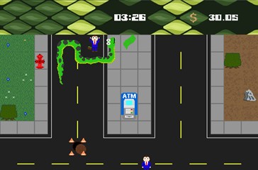 Take to the streets outside the bank and squeeze money out of your victims until you're big enough to break the bank.
