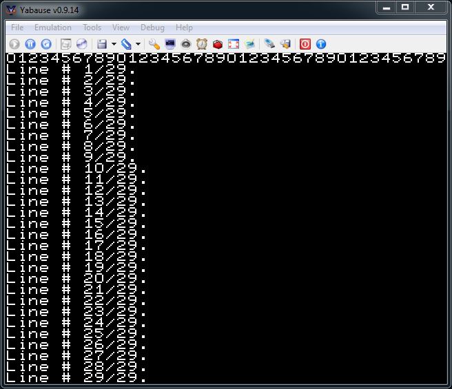 jo_printf(0, i, "Line # %d/%d.", i, 29);